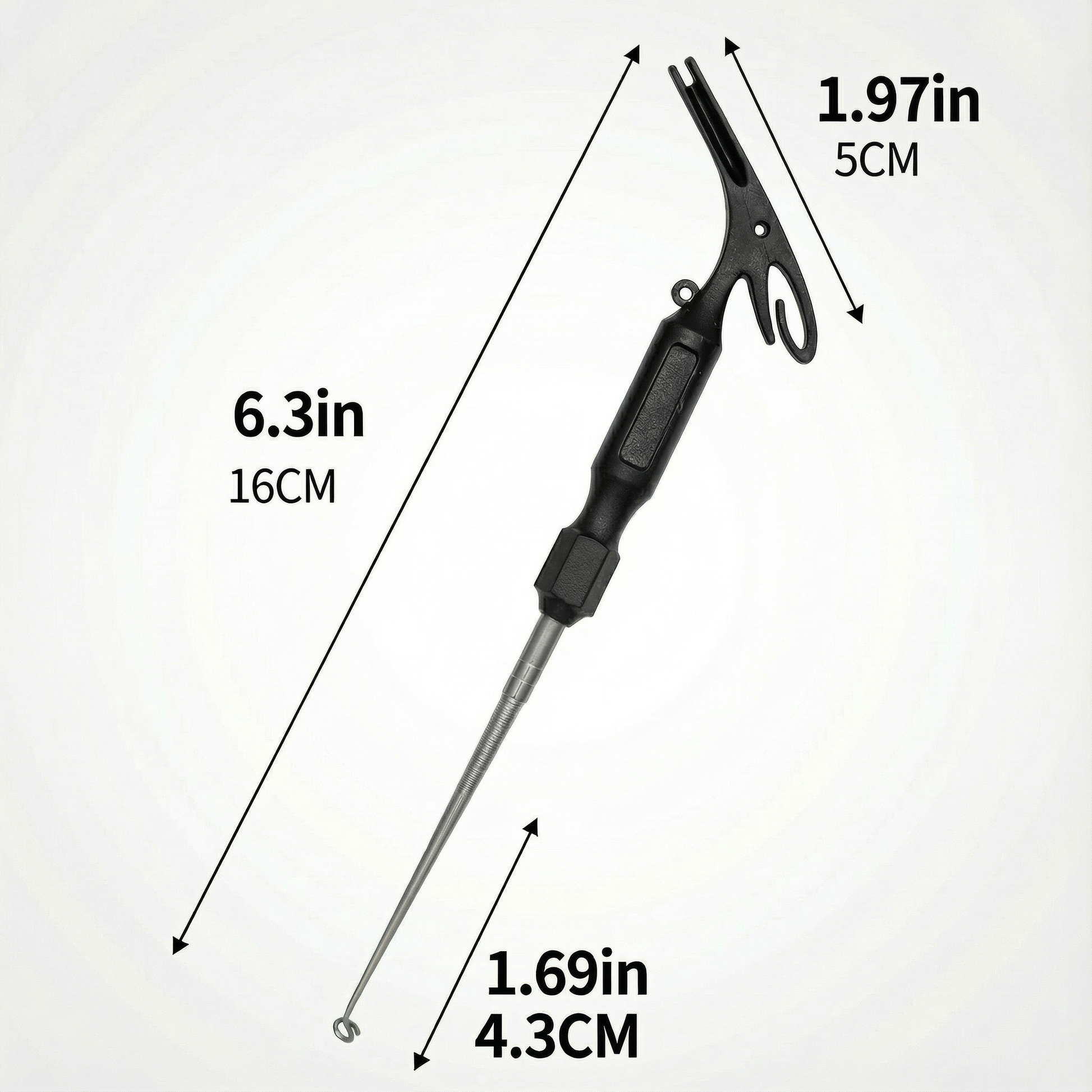 Instead of juggling multiple tools or putting fingers near sharp hooks, everything you need is built into one simple system.